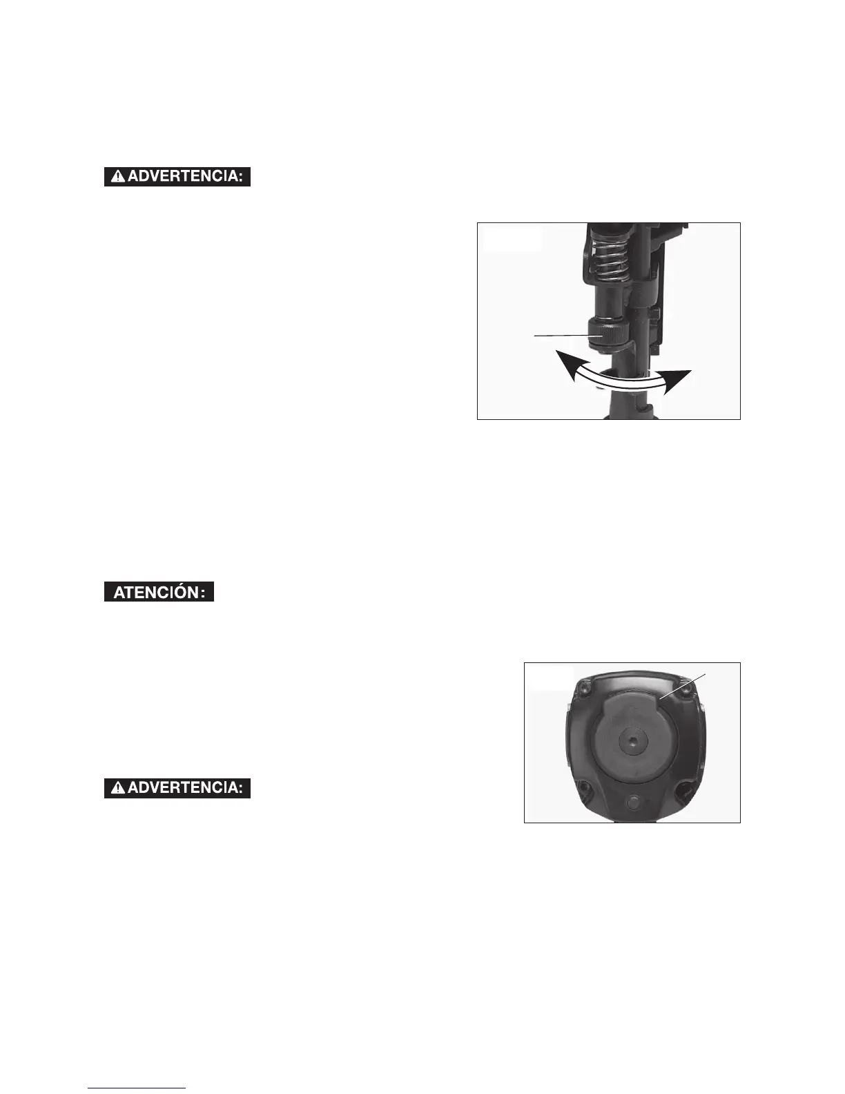 2. Para introducir más profundamente un clavo, gire la rueda de ajuste de la