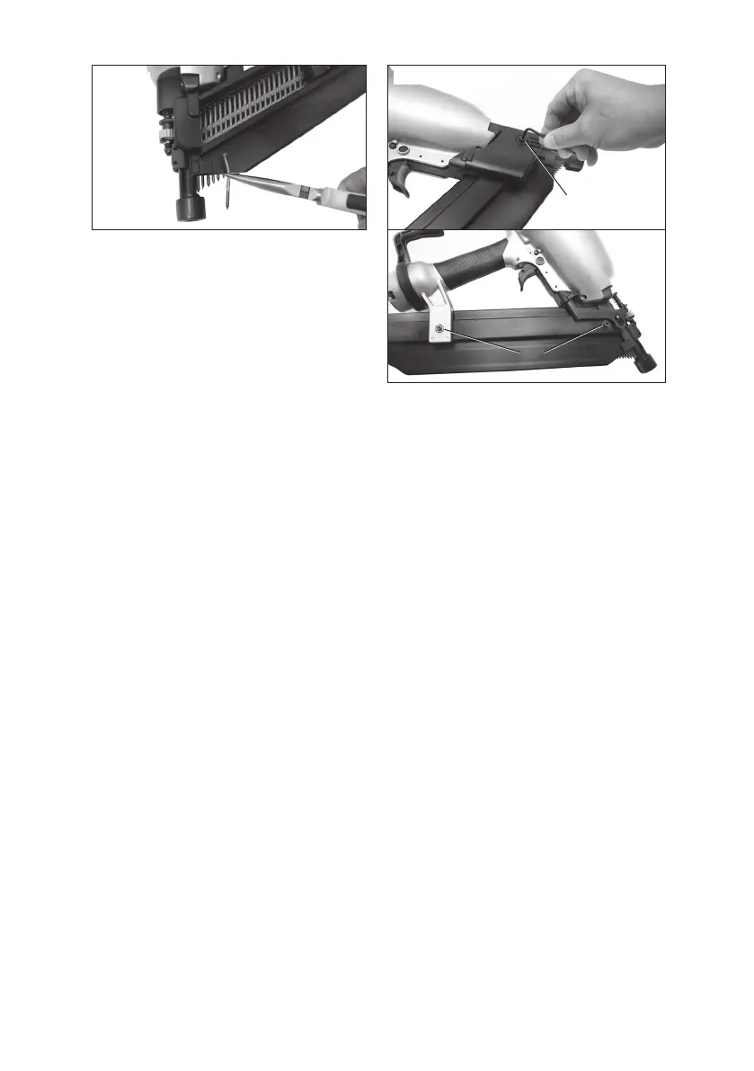 6. Rebrancher la source d’alimentation en air et recharger les clous dans le chargeur.