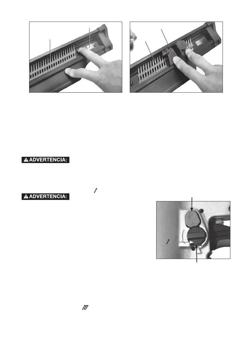No permita que el impulsor vaya hacia adelante contra la tira de clavos, de lo