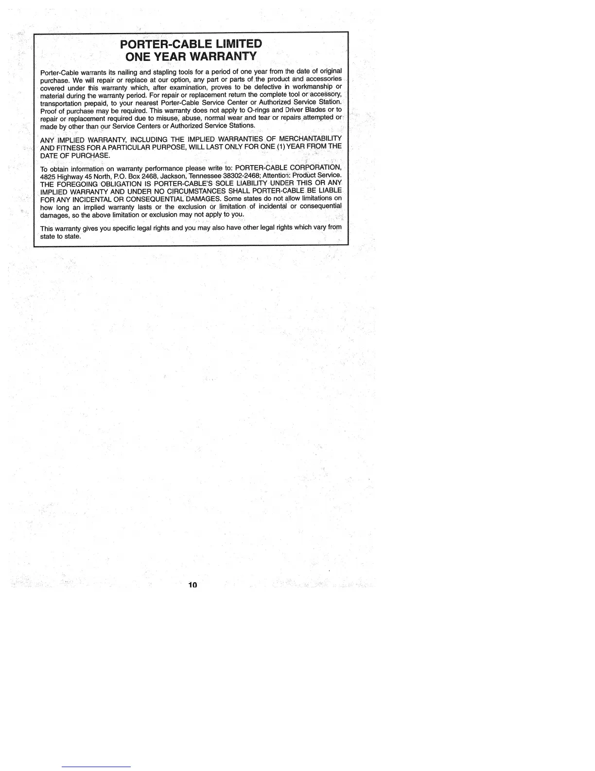 Porter-Cable NS100 - Porter-Cable Limited Warranty