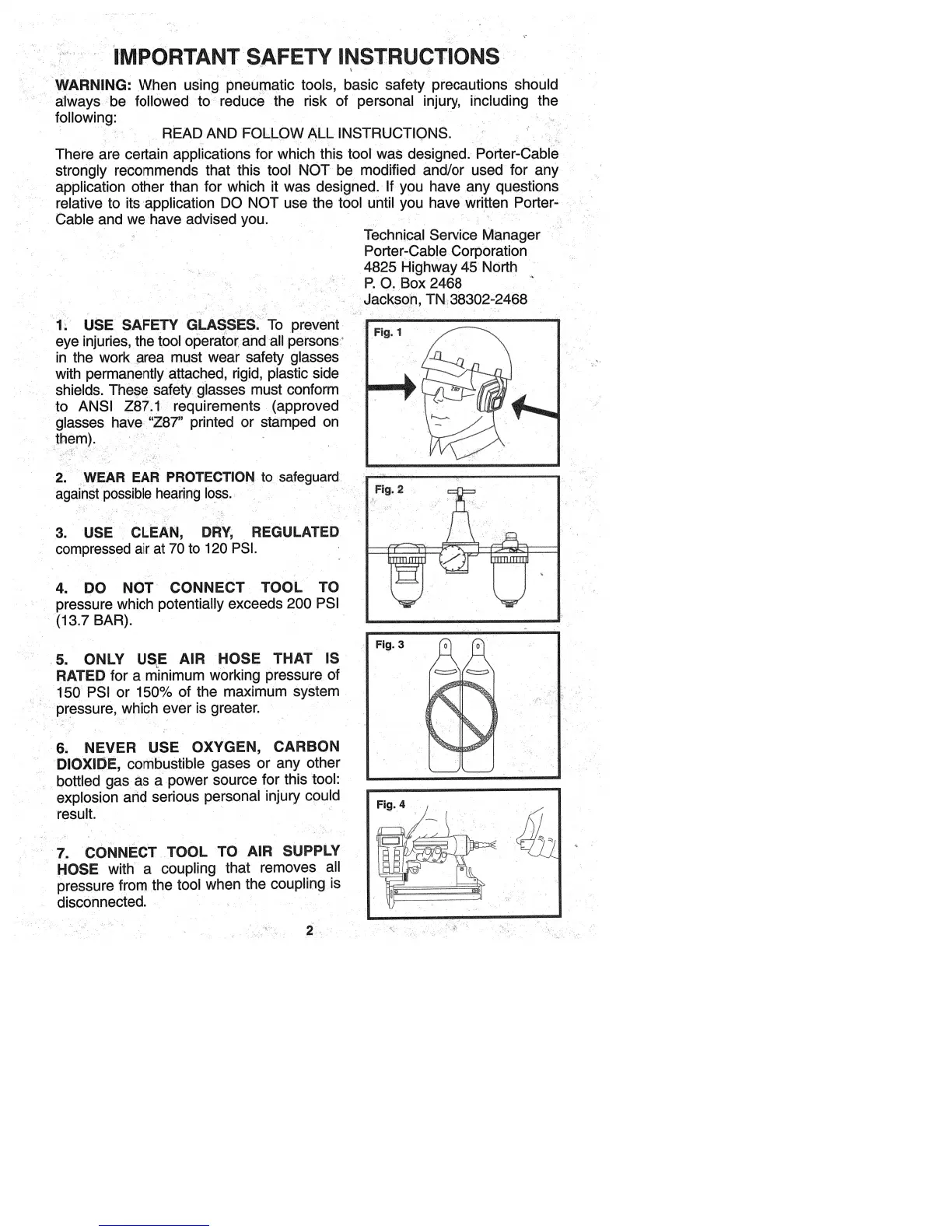 Porter-Cable NS100 - Important Safety Instructions; Safety Glasses Requirements; Hearing Protection; Compressed Air Requirements