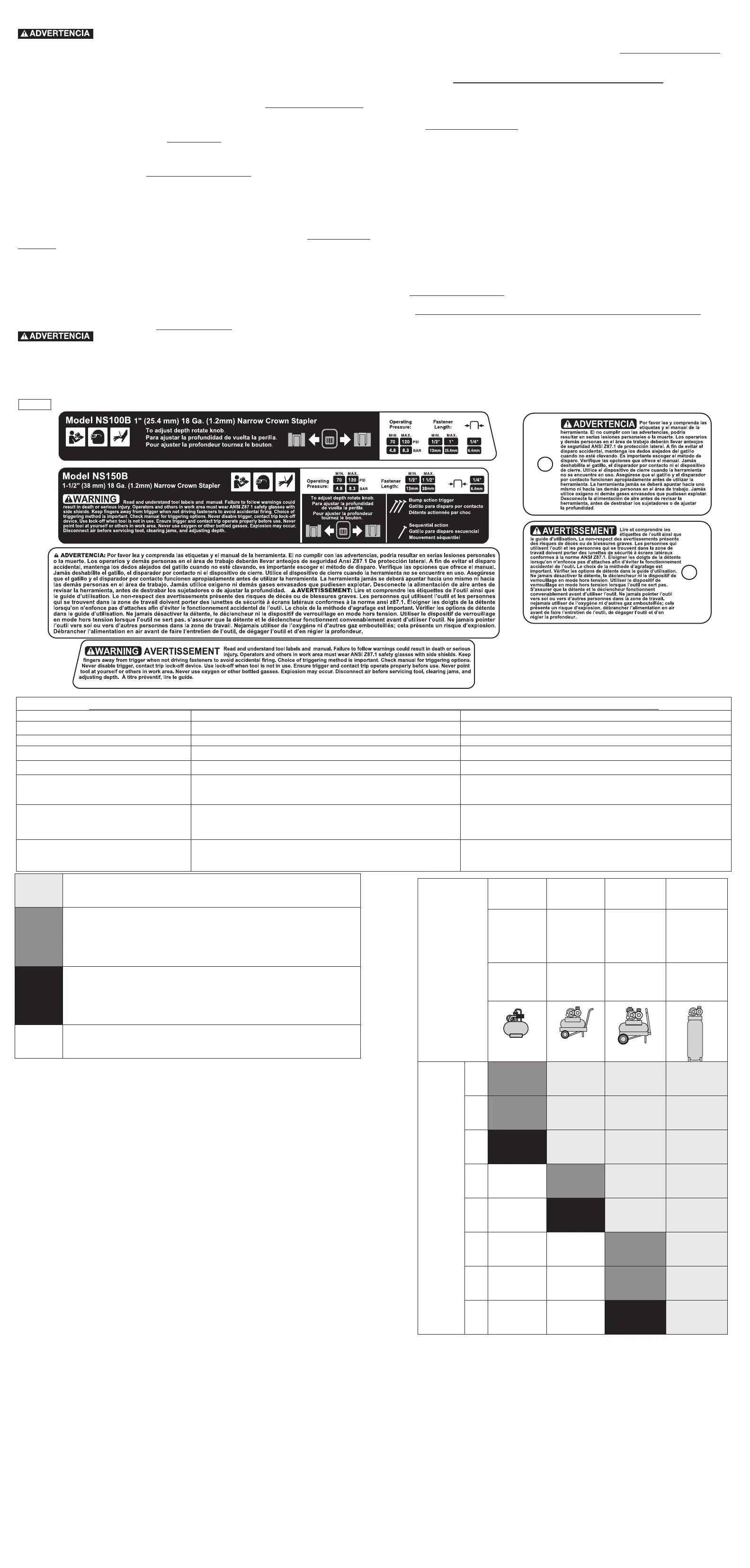 con el desempeño de su máquina herramienta o clavadora PORTER-CABLE, cualquiera sea el