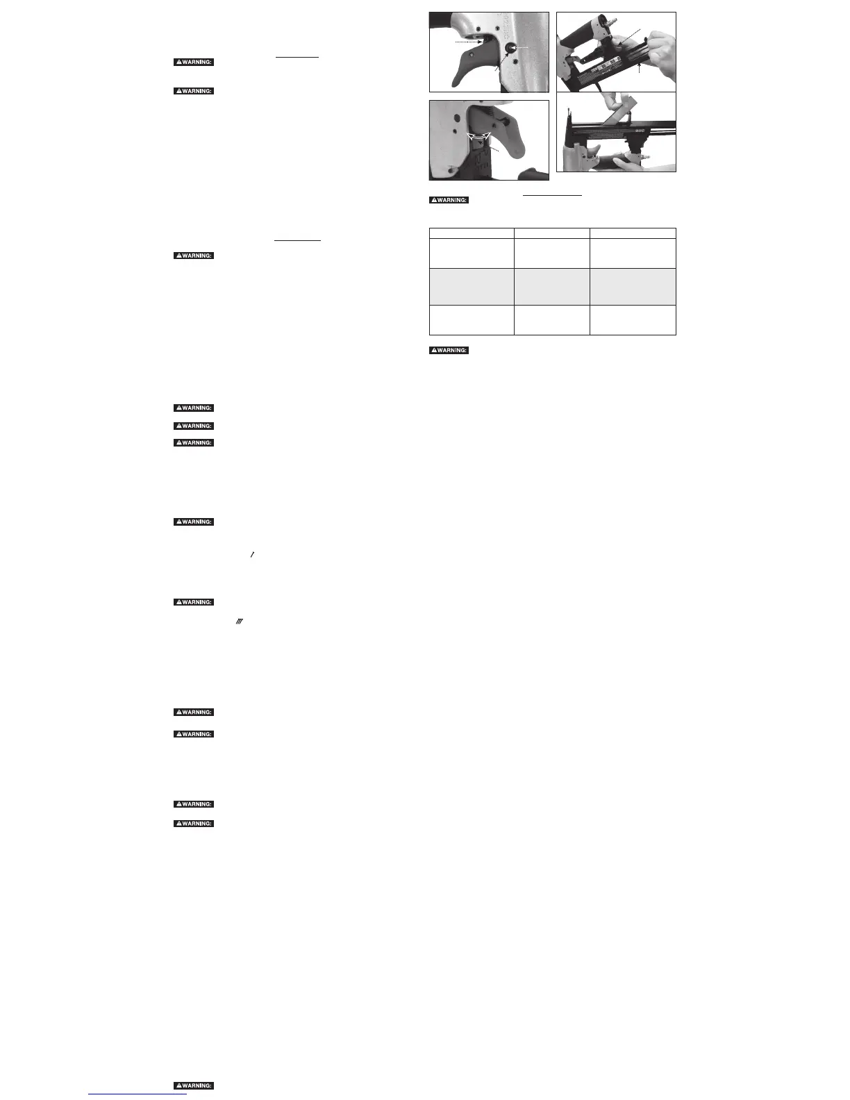 hearing protection [ANSI S12.6 (S3.19)] when operating this tool. Keep the nailer pointed