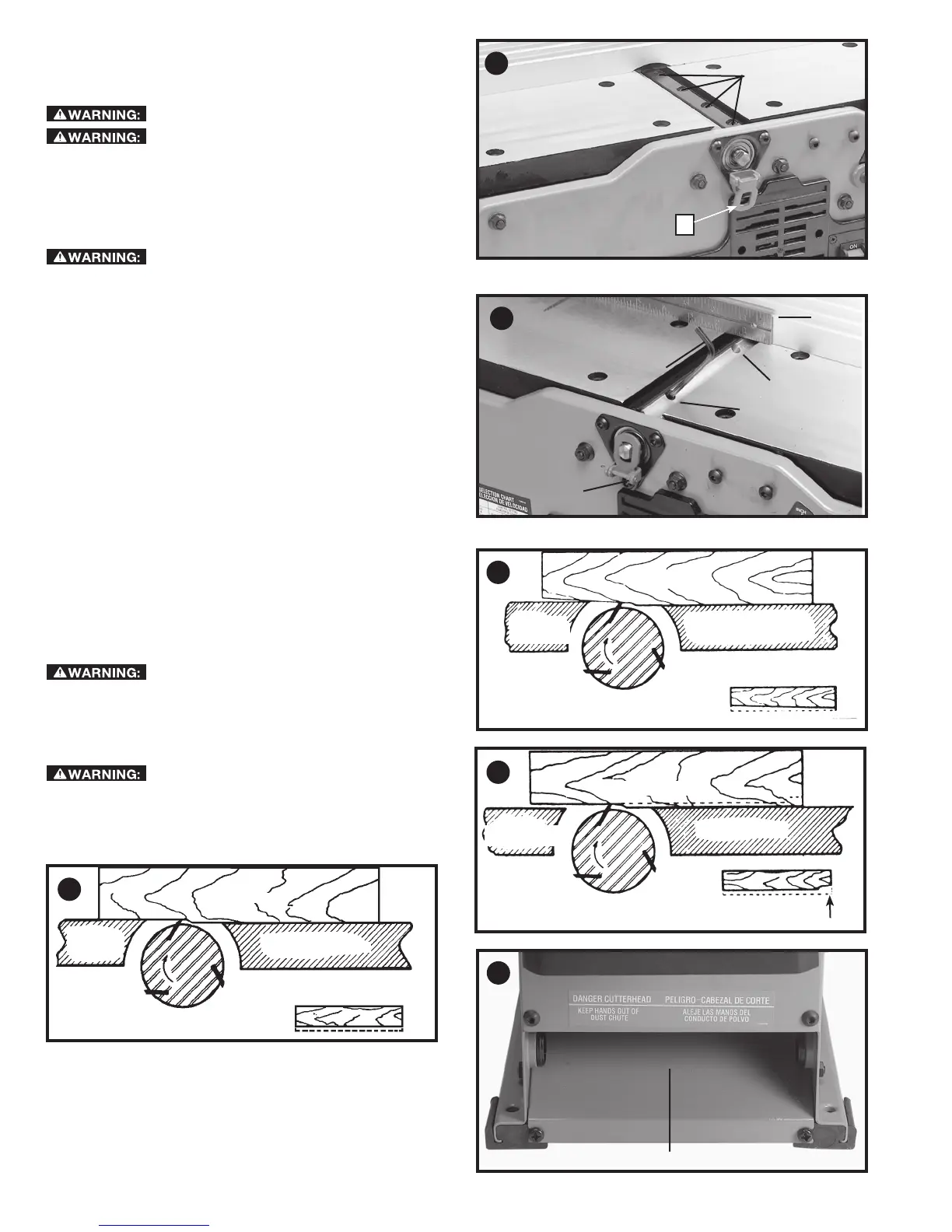 4. Rotate cutterhead and engage cutterhead lock (B) Fig. 31,