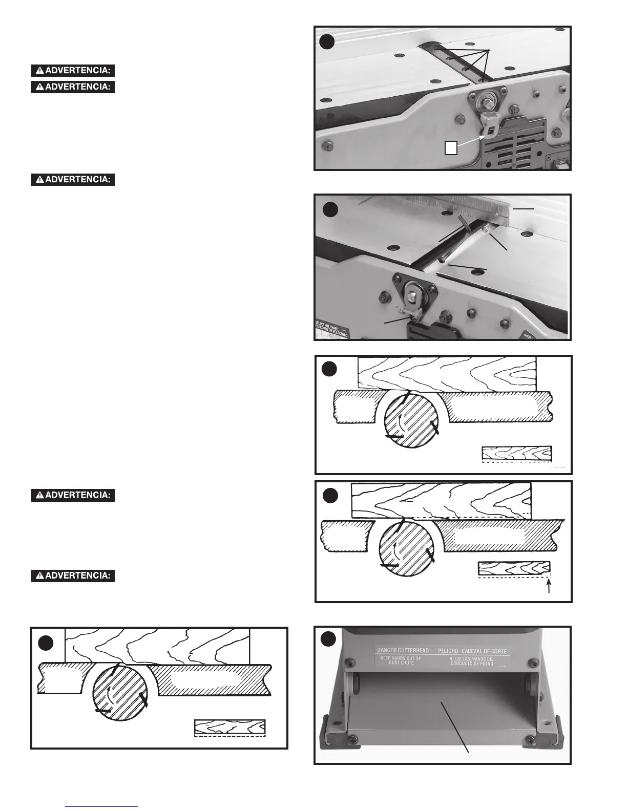 7. Si las cuchillas están colocadas muy altas, la pieza de trabajo