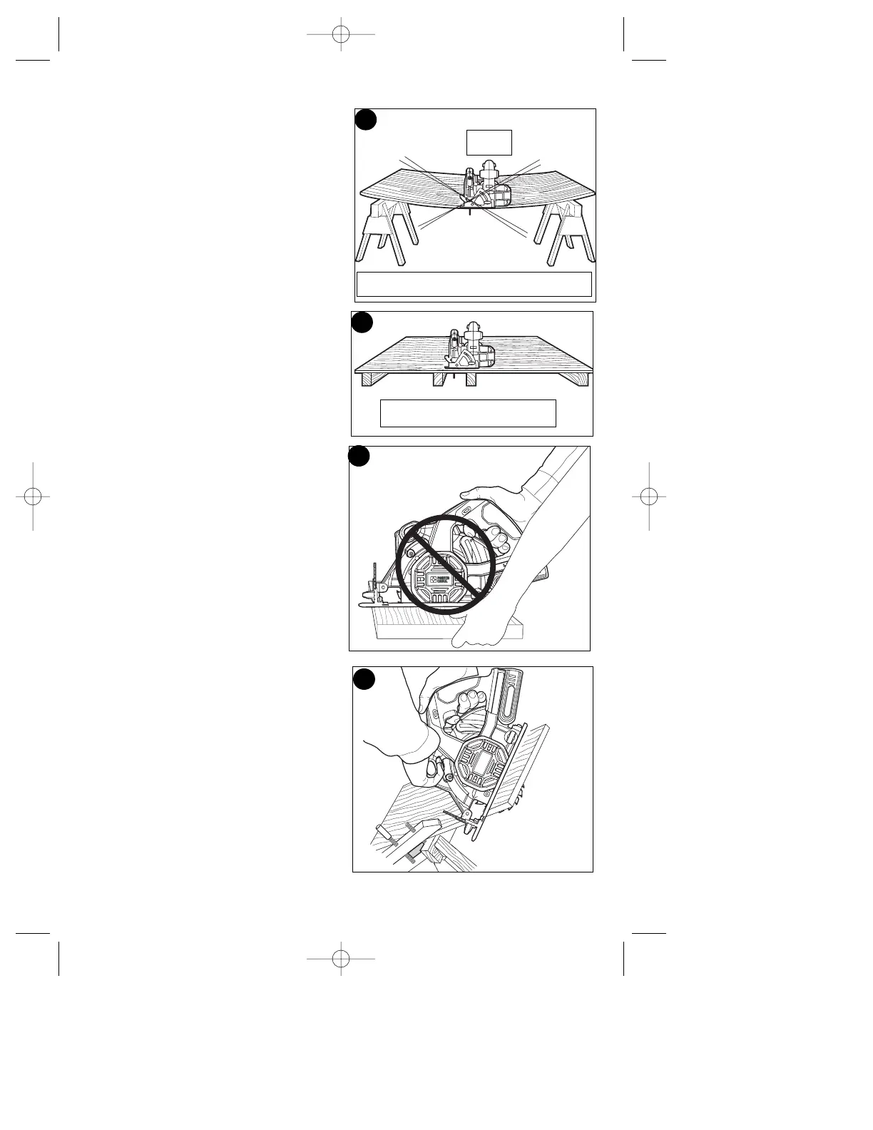 Never hold piece being cut in your hands or