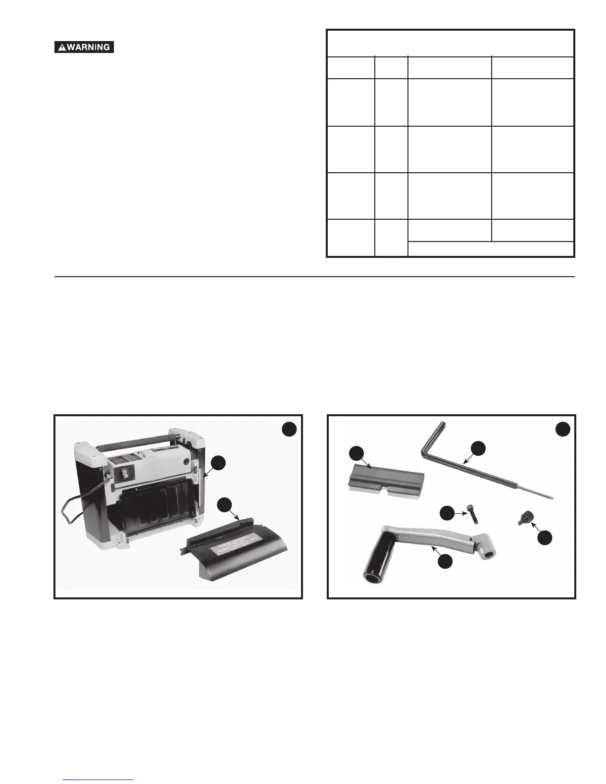two-knife cutterhead with double-edged reversible knives, knife-installation tool and wrench.
