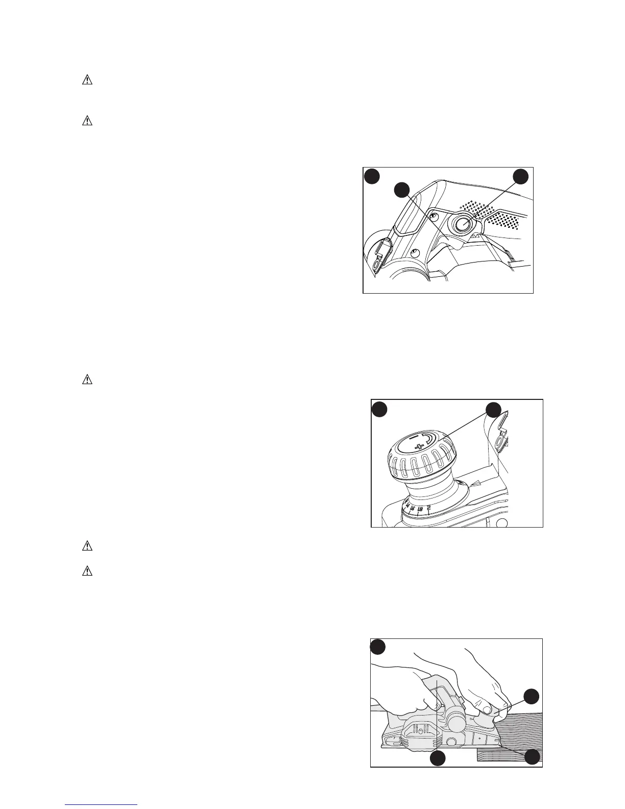 Hold the planer in the correct position with one hand on the front handle (C) and the