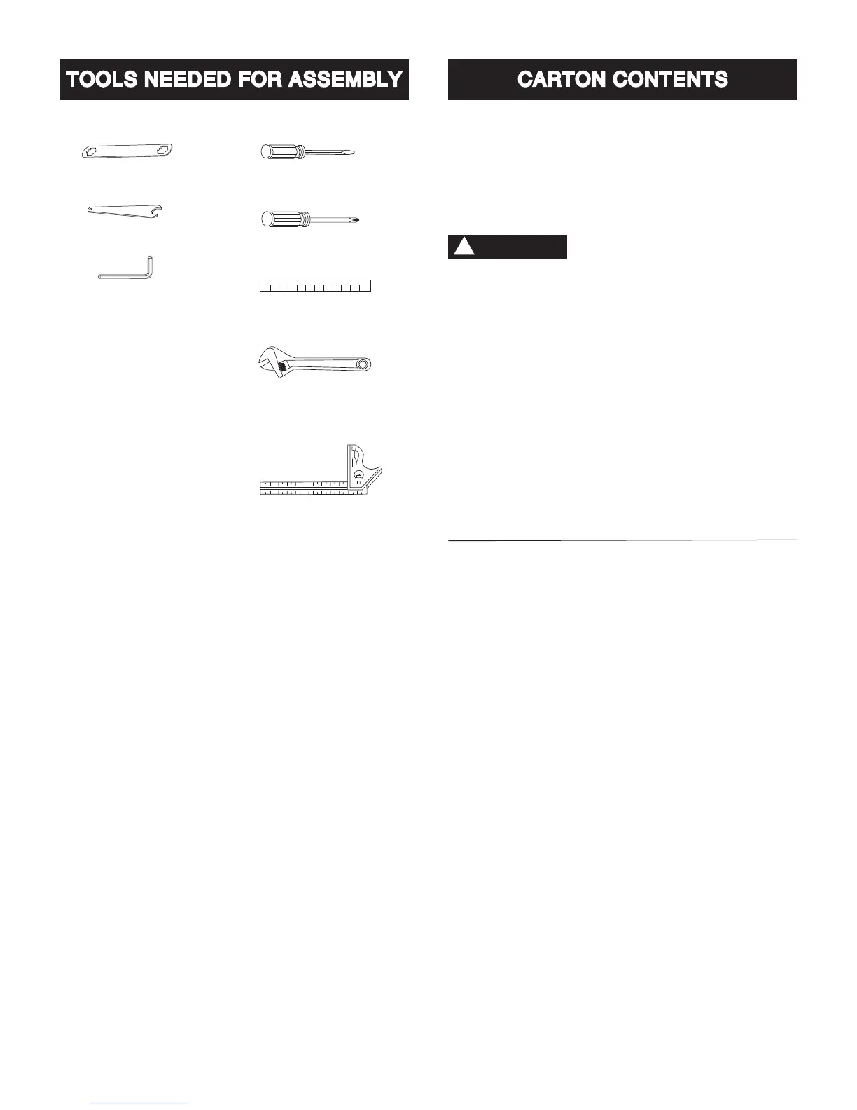 CARTON CONTENTSTOOLS NEEDED FOR ASSEMBLY