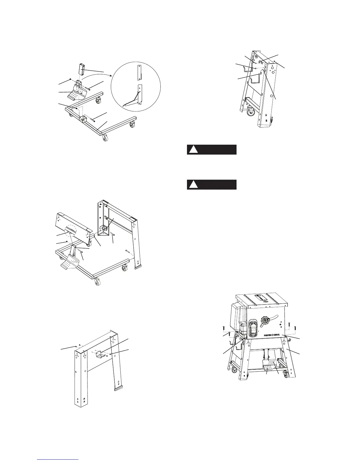 2. Bag “P” - Attach the table saw to the stand with four
