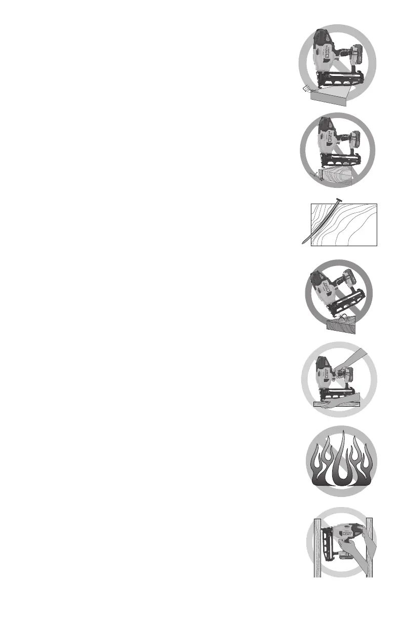• Do not drive nails onto the heads of other fasteners. Strong recoil,