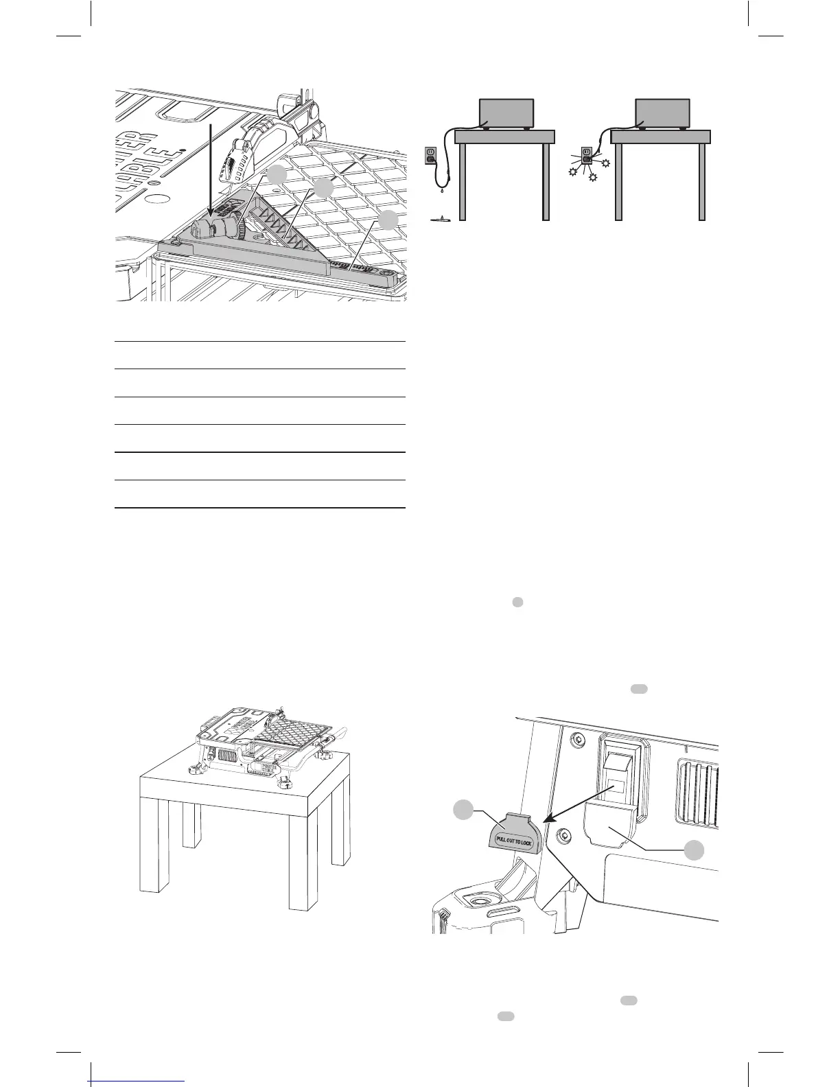 Para encender la sierra para azulejos húmeda, levante el