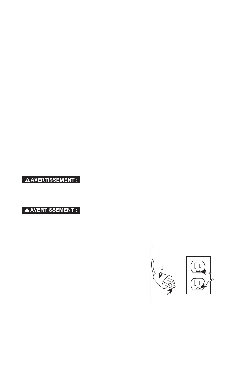 3. Inspectez la fiche et le cordon avant chaque utilisation. Ne pas les utiliser s'il y a