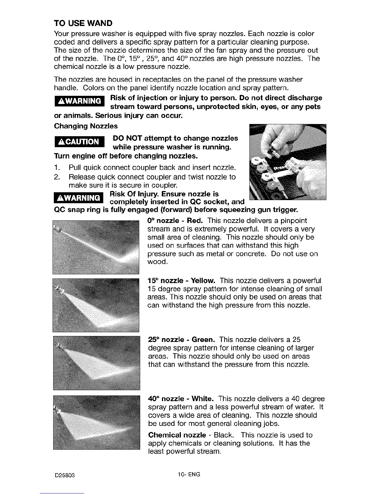 Turn engine off before changing nozzles.