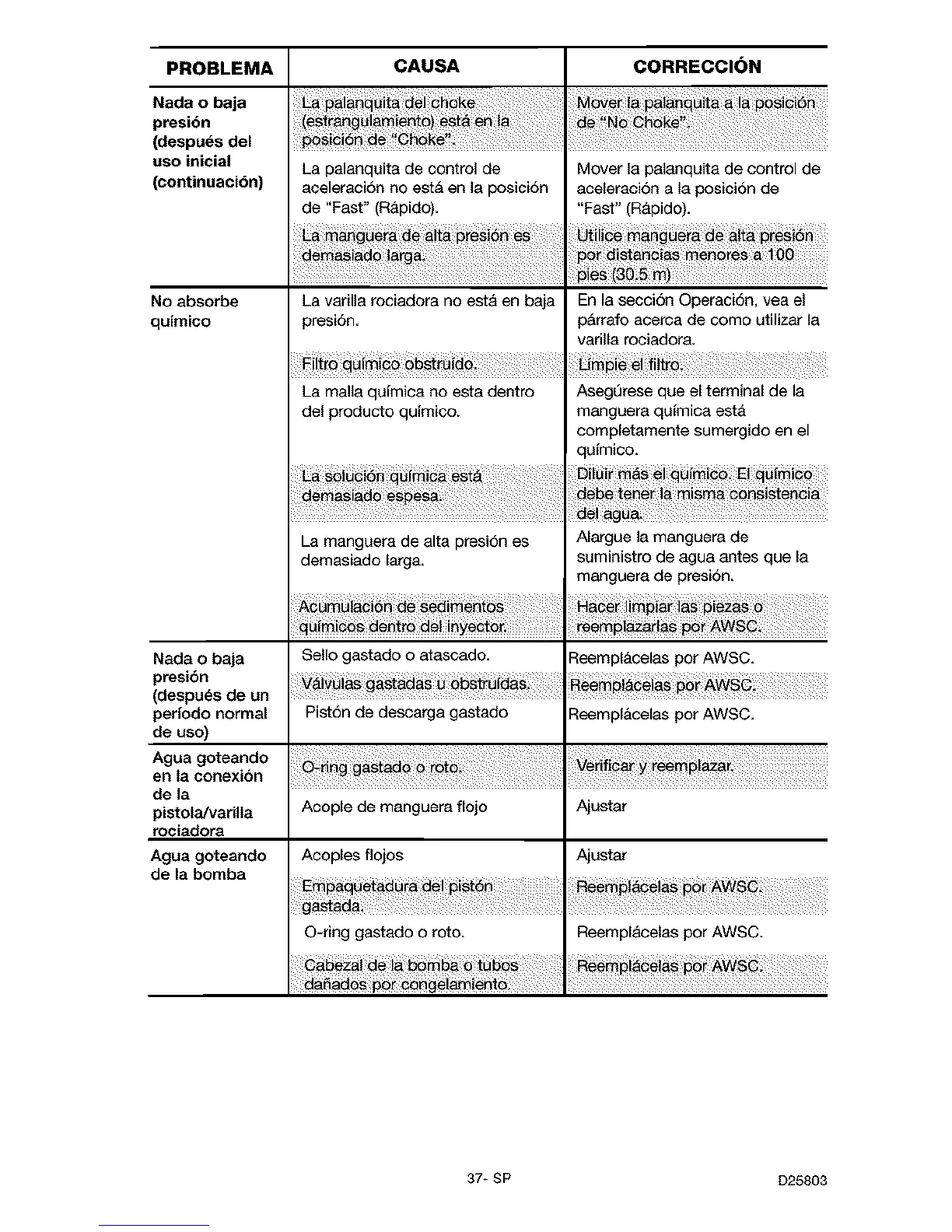 La varilla rociadora no est& en baja En la secci6n Operaci6n, vea el
