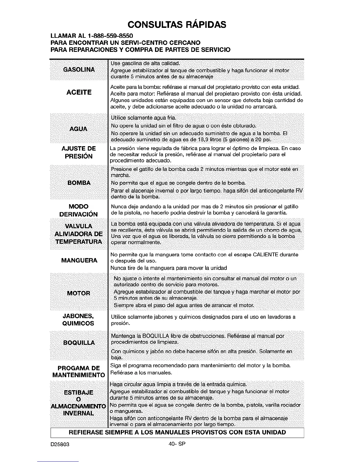 Aceite para 18bomba: ret_6rase al manuaJ del propietario provisto con esta unidad.