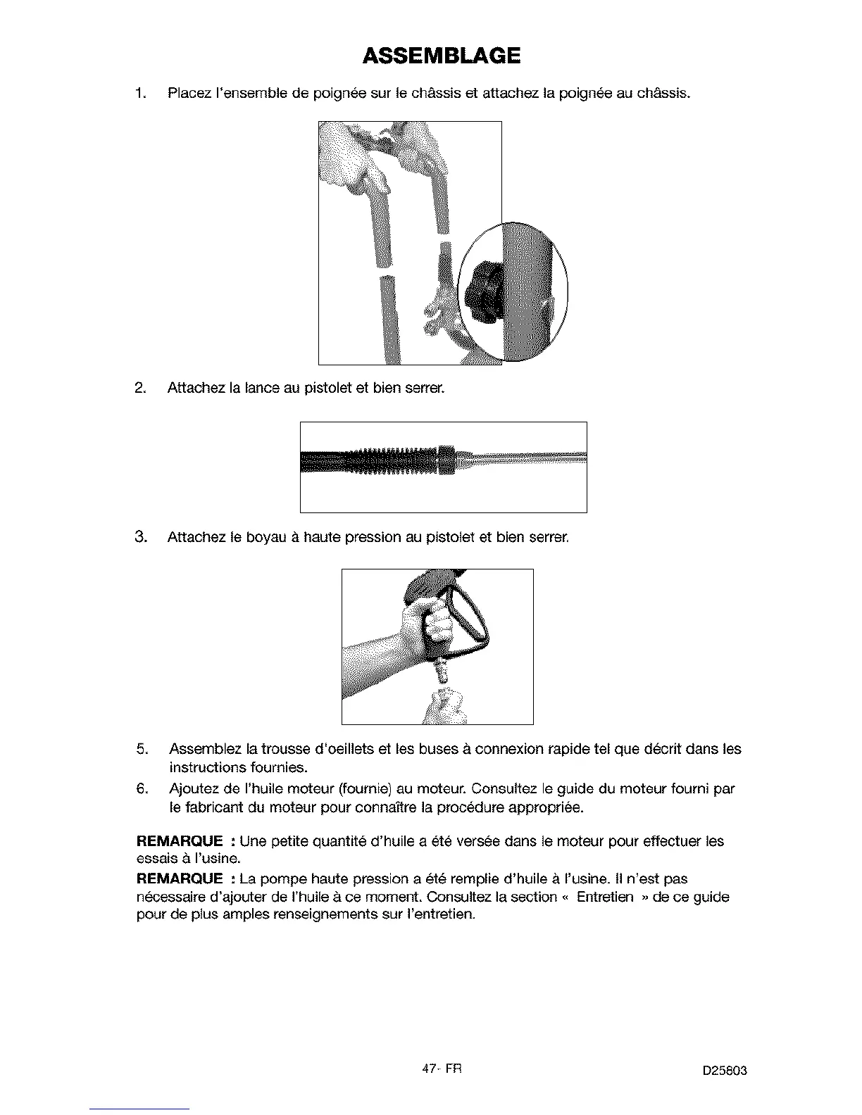 REMARQUE : Une petite quantit_ d'huile a 6t_ vers6e dens le moteur pour effectuer les