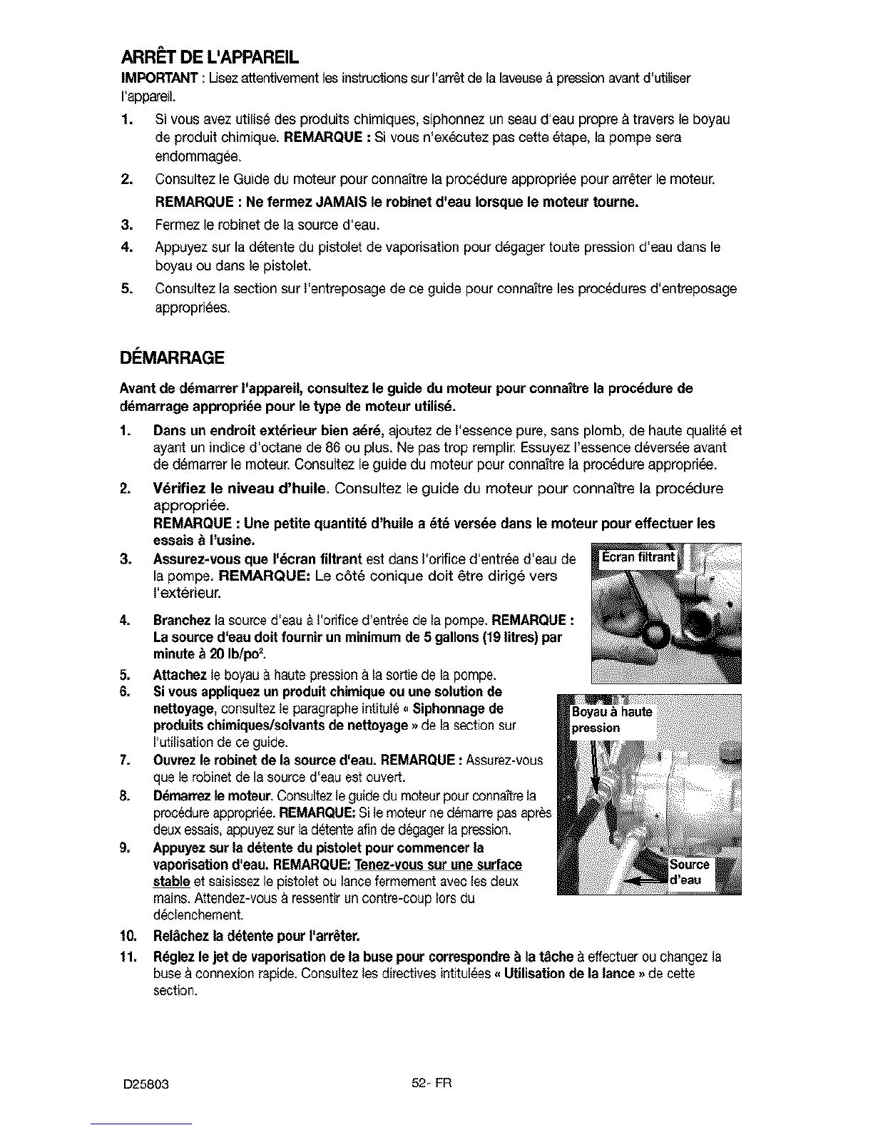IMPORTANT : Usezattentivement les instructions sur I'arr_t de la laveuse& pression avantd'utiliser