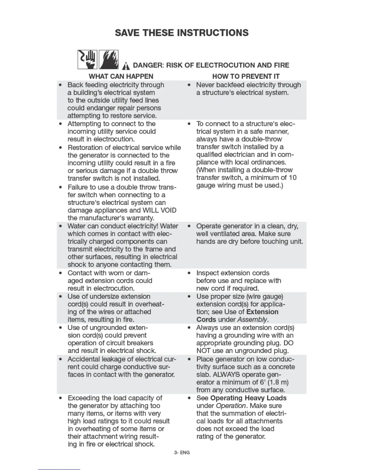 Porter-Cable PCI2200 - Risk of Electrocution and Fire; Electrocution and Fire Hazards; Prevention of Electrocution and Fire