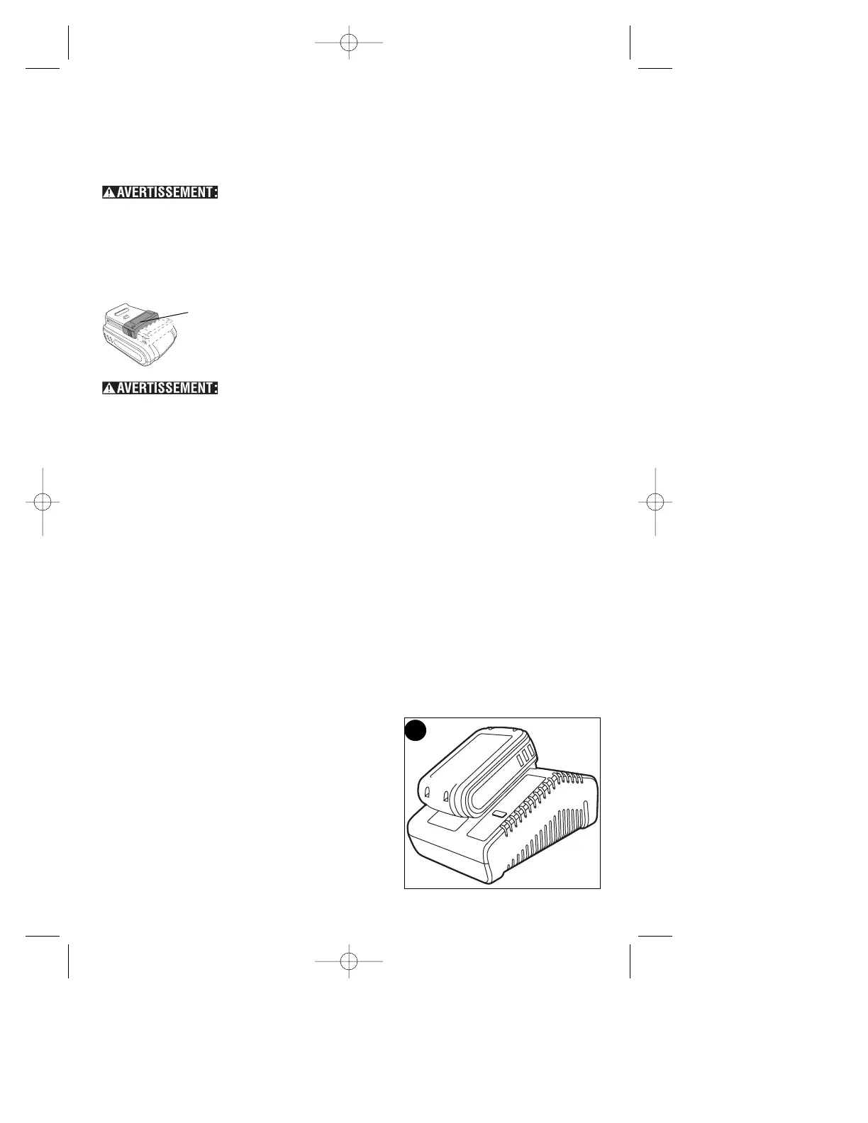 • NE PAS éclabousser le bloc-piles ou l’immerger dans l’eau ou tout autre liquide.