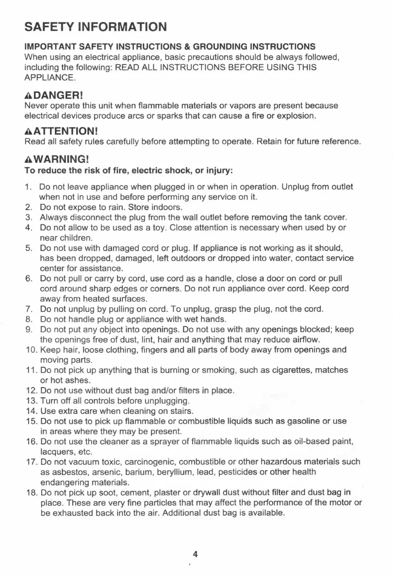 INSTRUCTIONS & GROUNDING INSTRUCTIONS