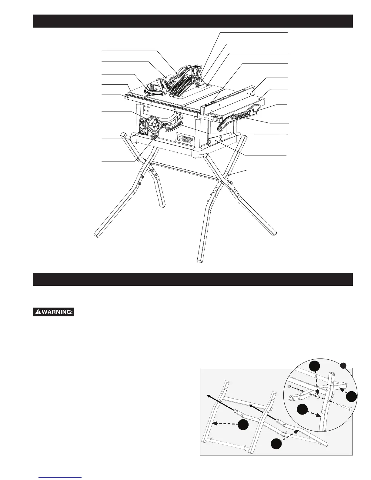 • Fully assemble saw with leg assembly prior to use.