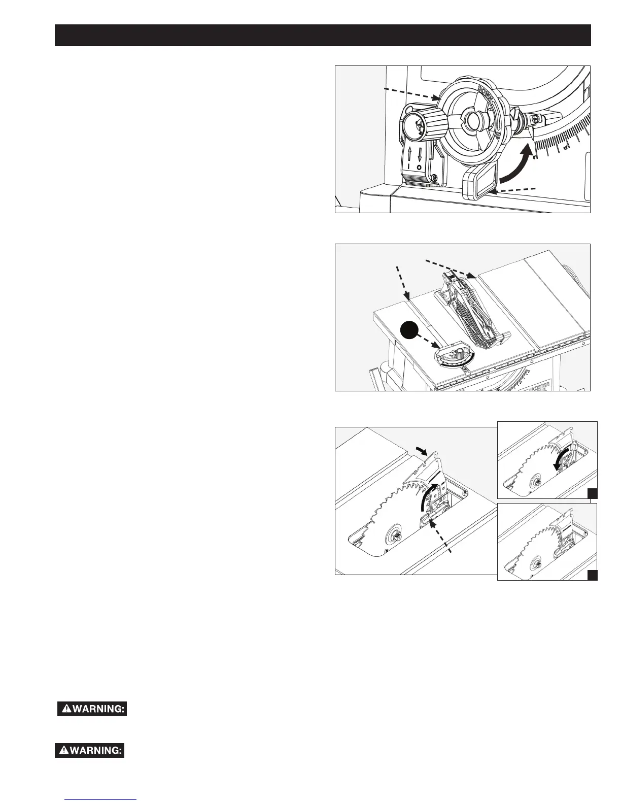 • Be sure to reinstall blade guard assembly, anti-kickback pawls when riving knife is in the through cut posistion.