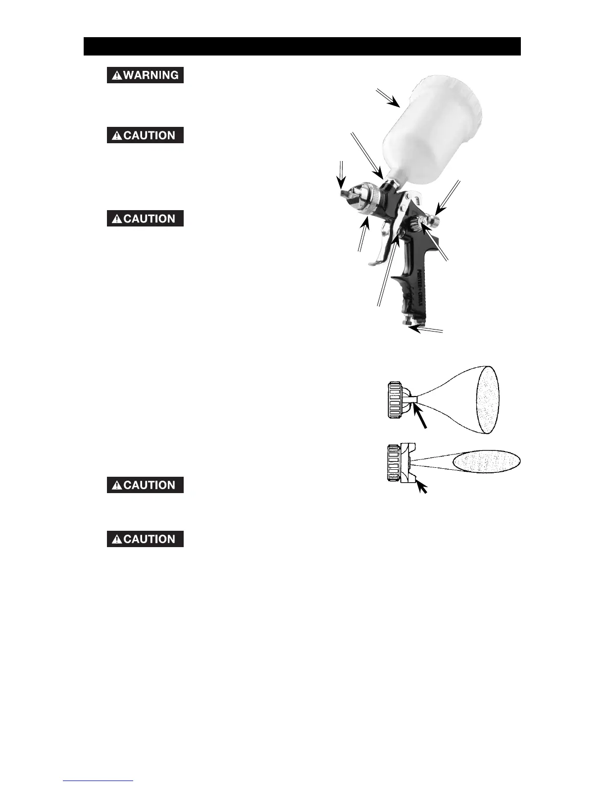 b. Width of “fan spray” is gov erned by (B) pattern adjustment knob. Turn knob coun ter clock-