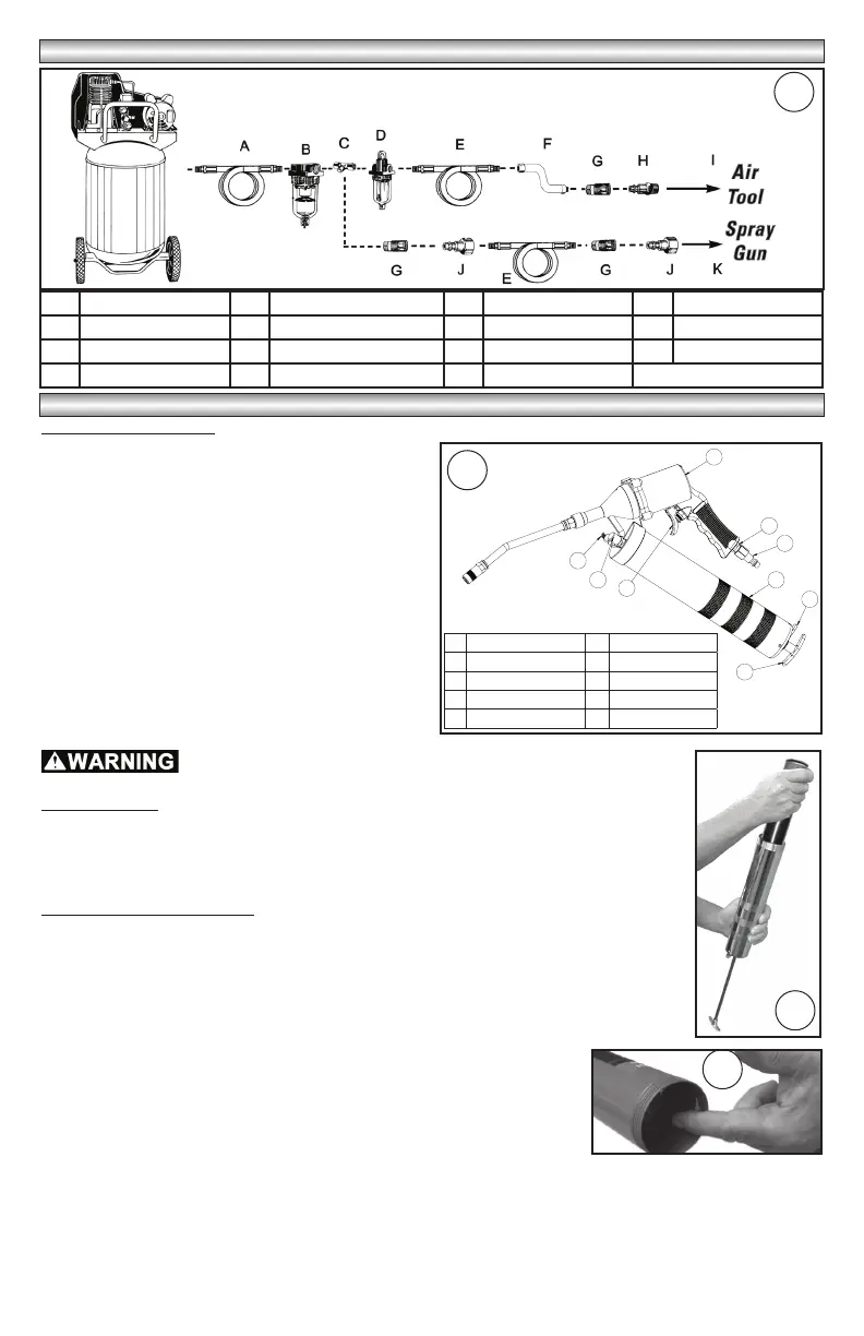 A Air hose D In-line Oiler G Quick Coupler J Female Plug