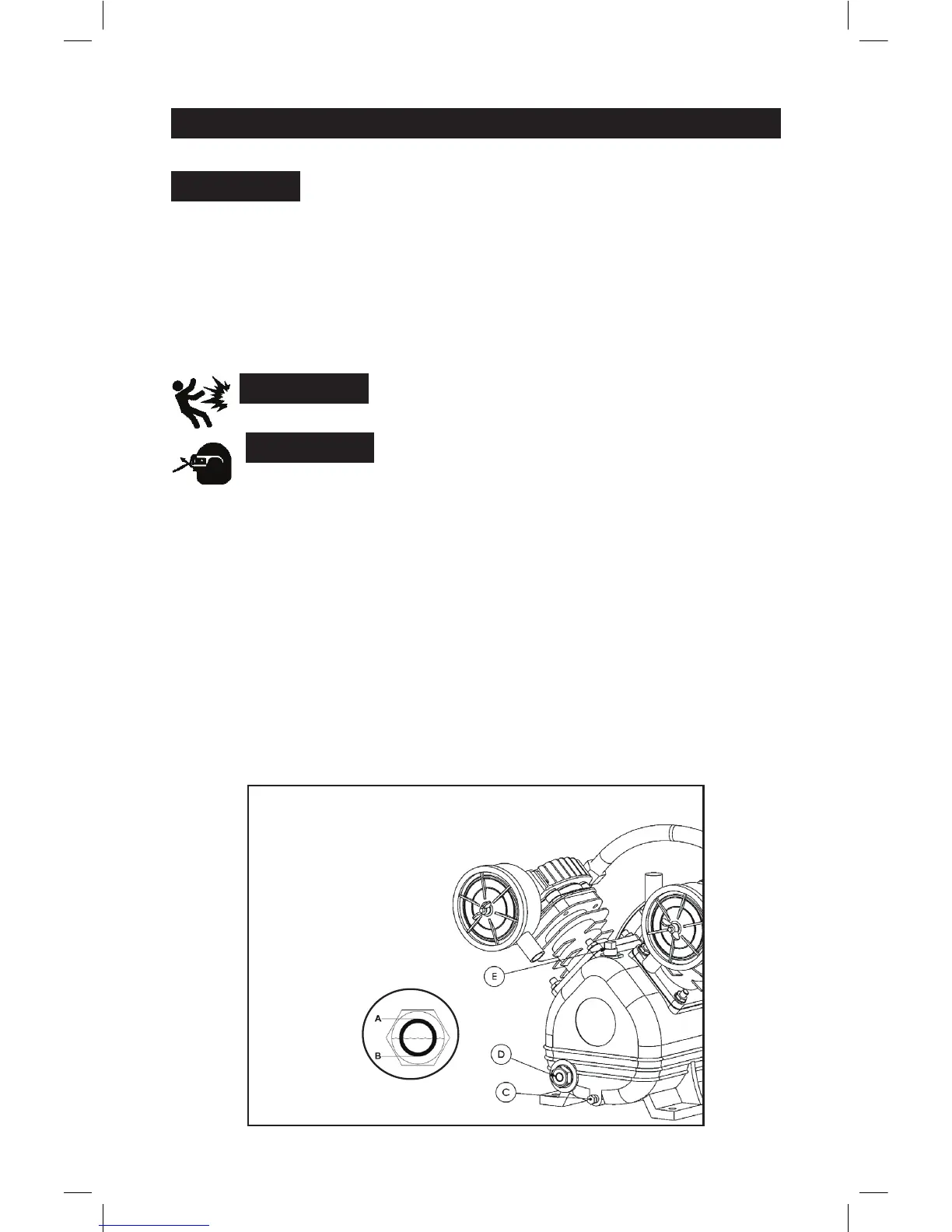 close. Add oil to the pump by first removing the breather plug (E). Add oil until