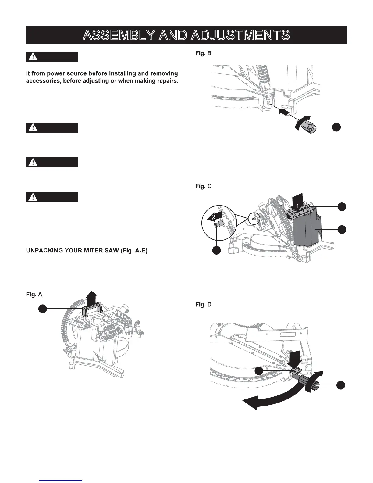 3. Assemble miter lock handle (2) to the miter saw control