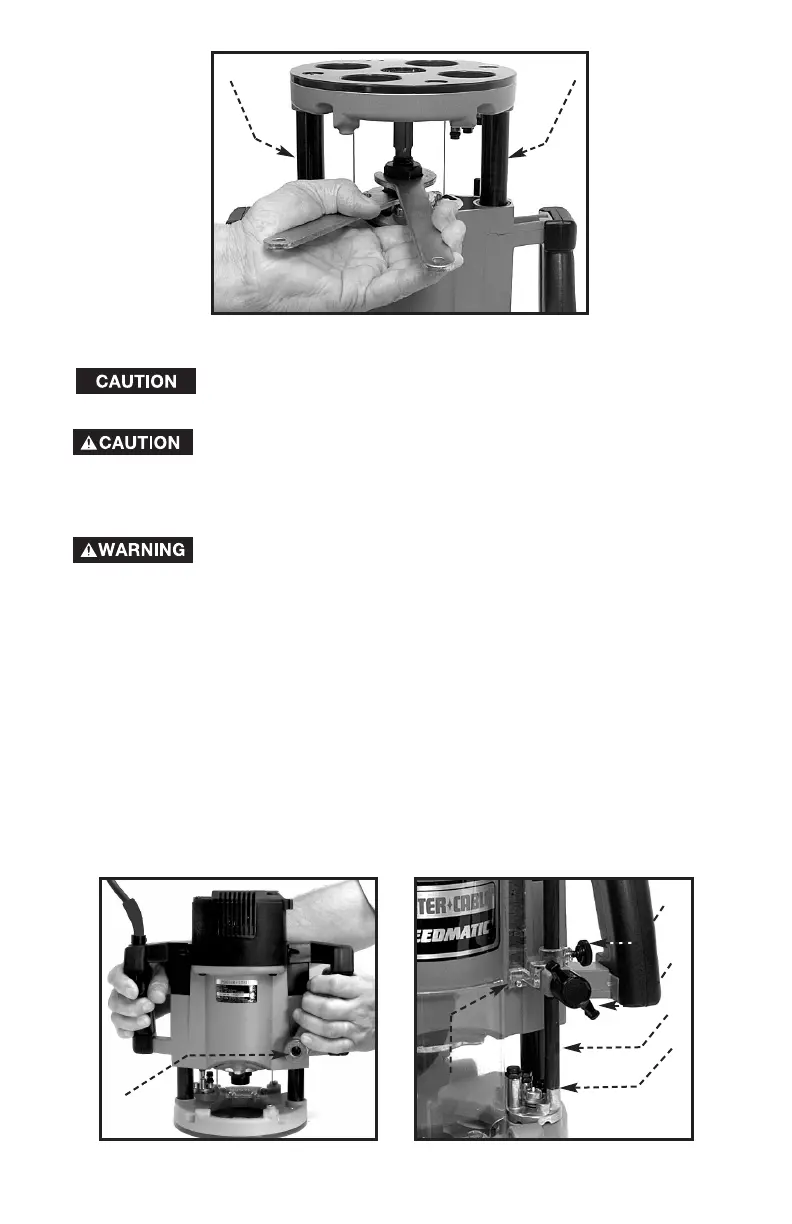 the left, and lower the plunge mechanism until the router bit touches the