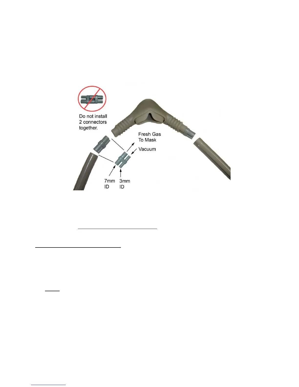 connector, fresh gas / coaxial tubing, a corrugated hose and hood assembly. Attach the nasal