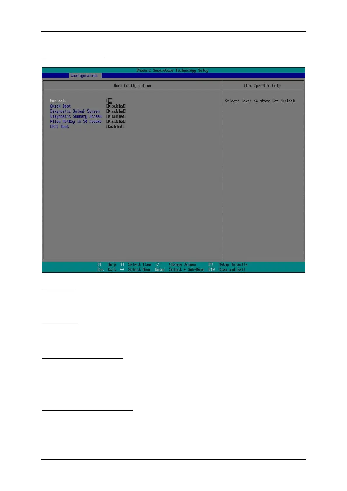 Selects Power-on state for NumLock.