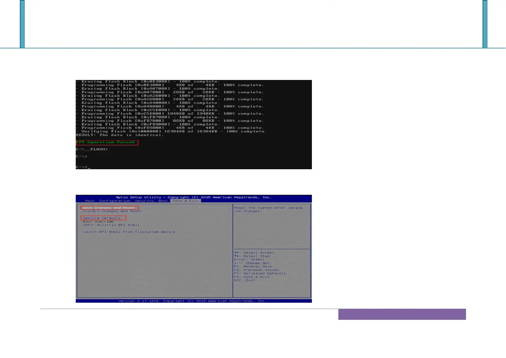 6. When you see the ―FPT Operation Passed‖ message, which means the BIOS update processes finished. Please cut the AC power off and wait for
