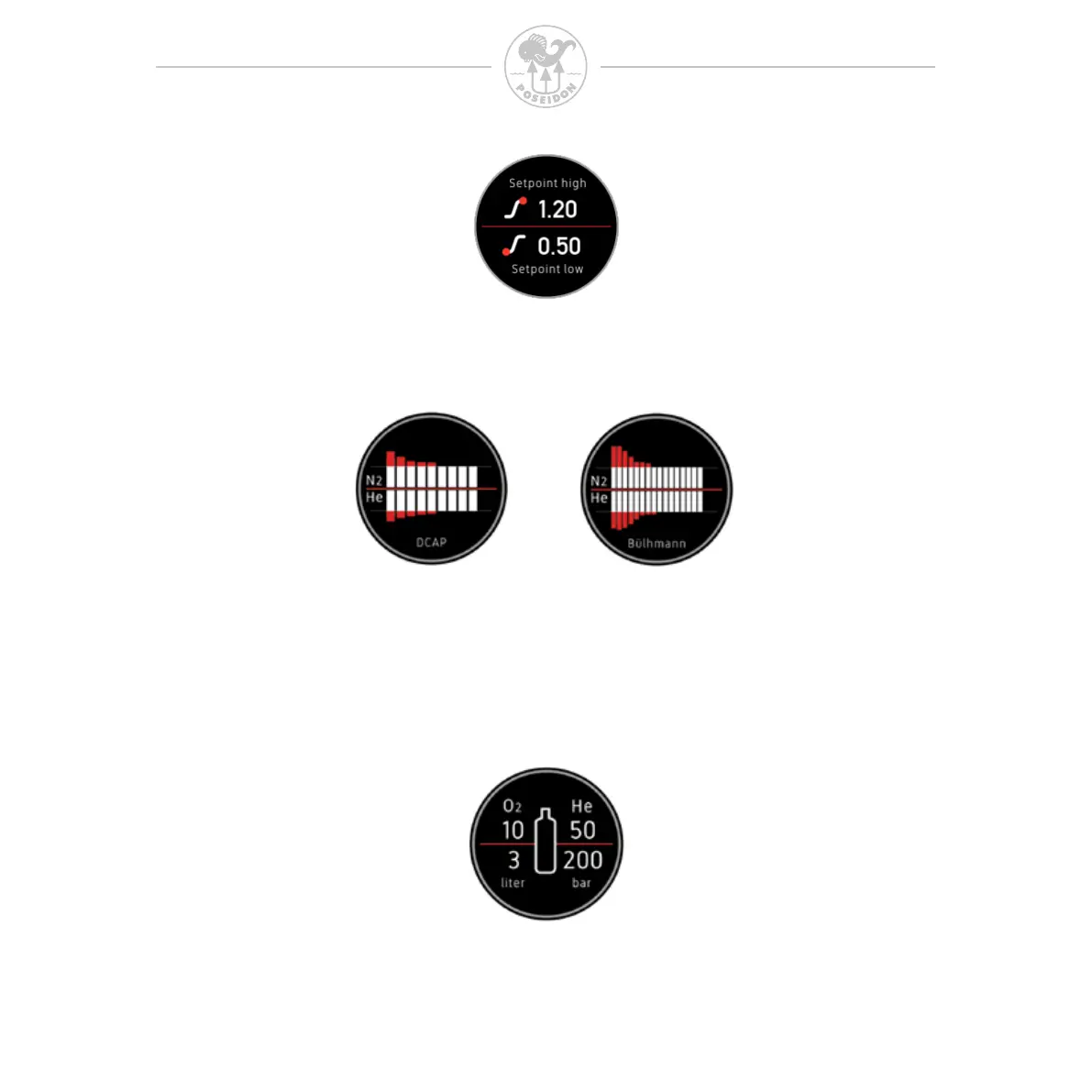 app menu in SE7EN, CPOD and Setpoint dive mode.