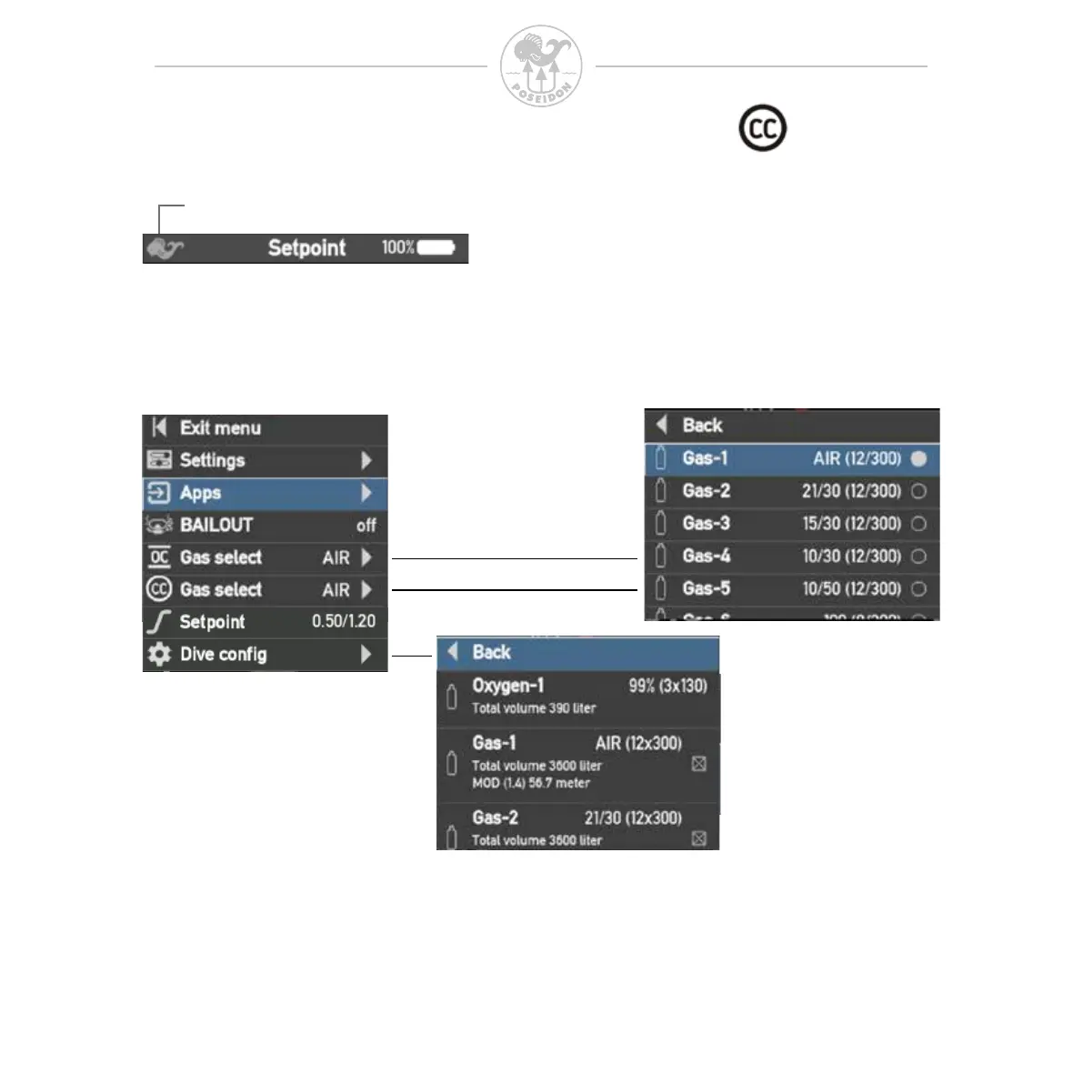 CONFIGURING GASES IN SETPOINT (CC) MODE