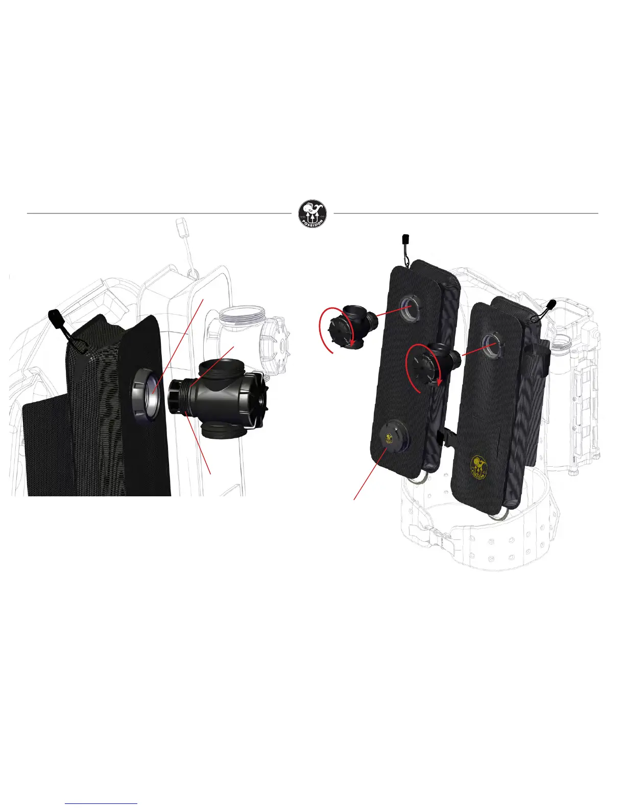 Locate the two counterlungs and their respective water diversion manifolds (also known as