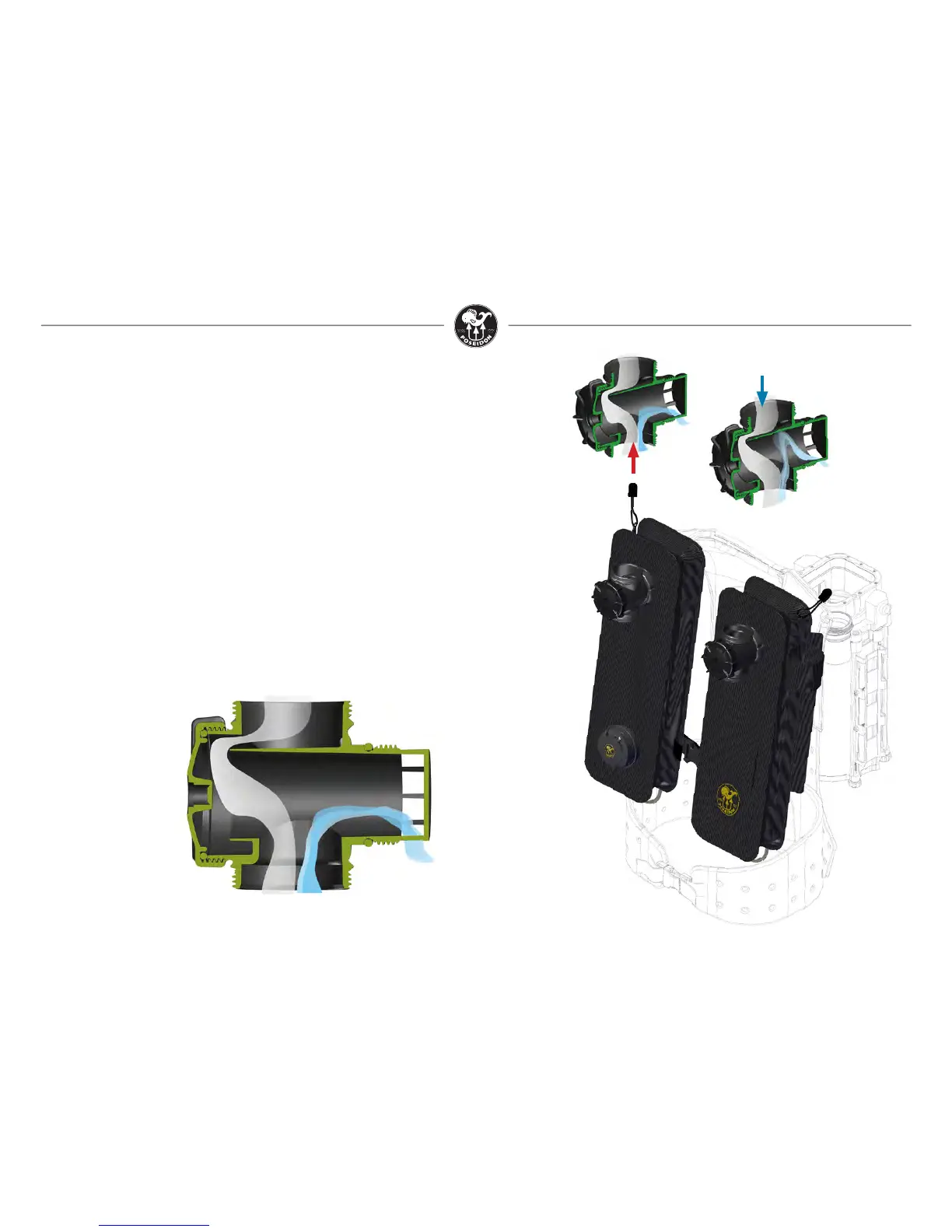 of the counterlung port. Verify that the “front” of the water diversion manifold is pointed forward,