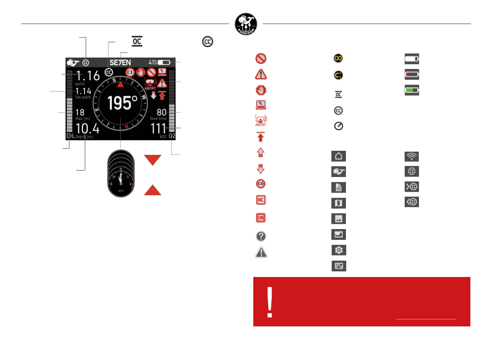 *In SE7EN dive mode the ppO2 of the breathing loop is displayed while in closed circuit