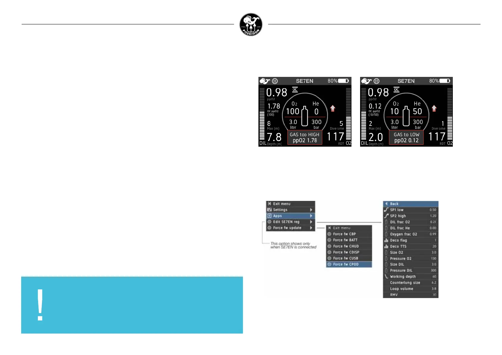 Now you can change the on-board oxygen (SE7EN O2) and diluent (SE7EN DIL) conguration