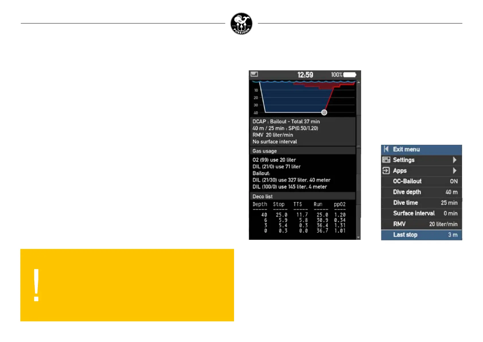 bailout scenario. To do this, set OC-bailout to ON. The Planner will then calculate decompres-