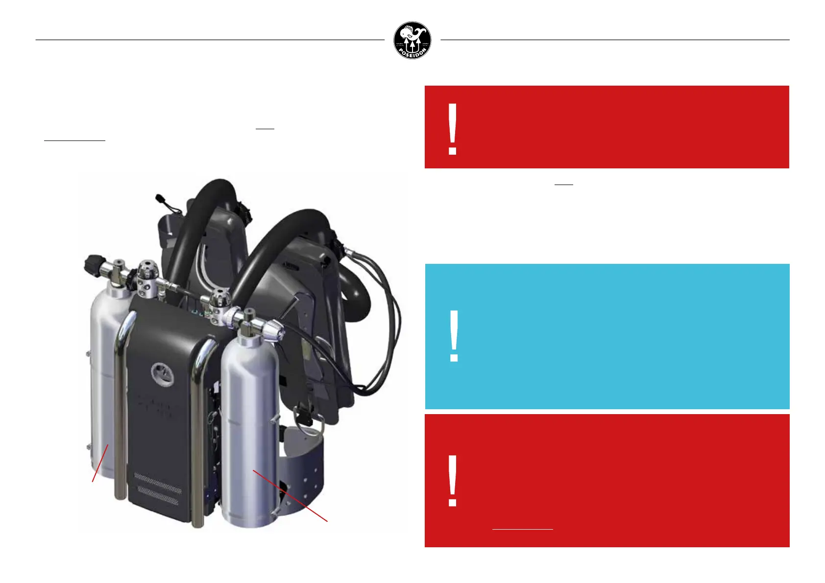 cylinderswith valves. The oxygen cylinder has a green valve knob and the diluent cylinder has