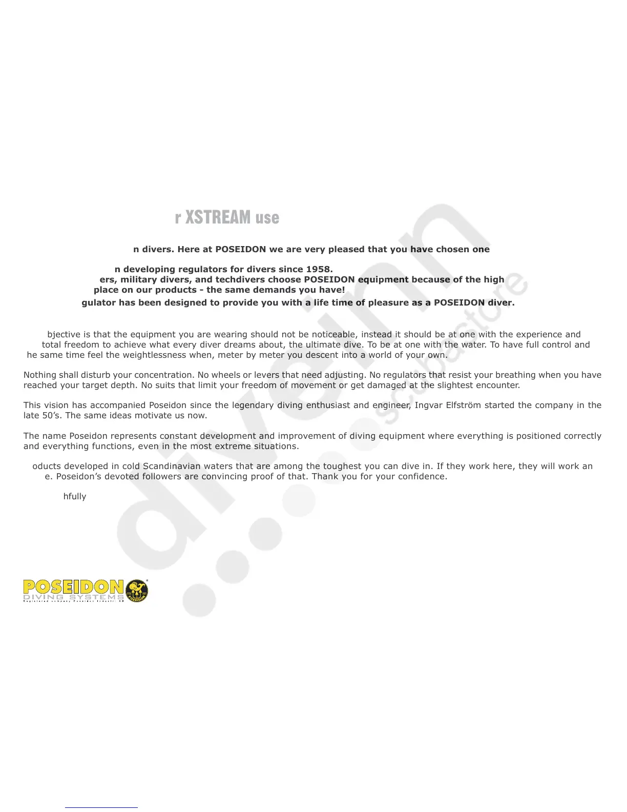 Your new regulator has been designed to provide you with a life time of pleasure as a POSEIDON diver.