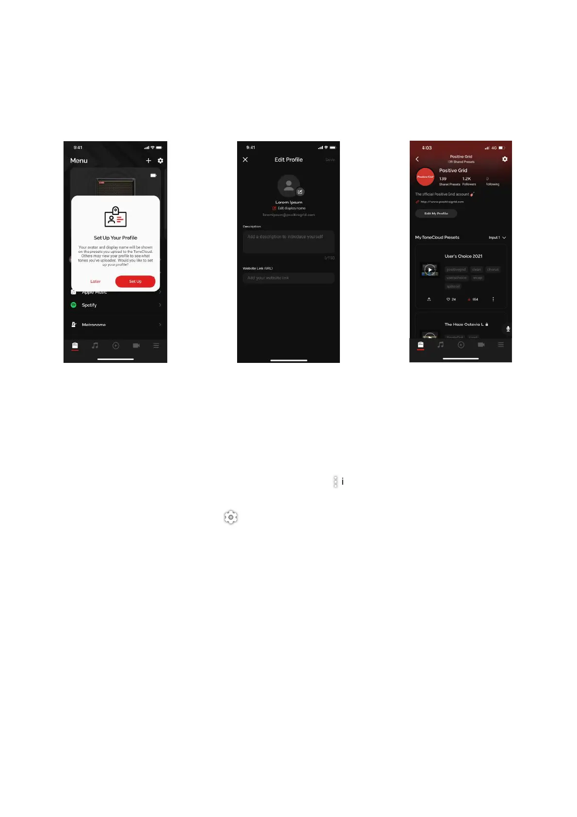Set up your profile to manage your ToneCloud presets and connect with other Spark users.
