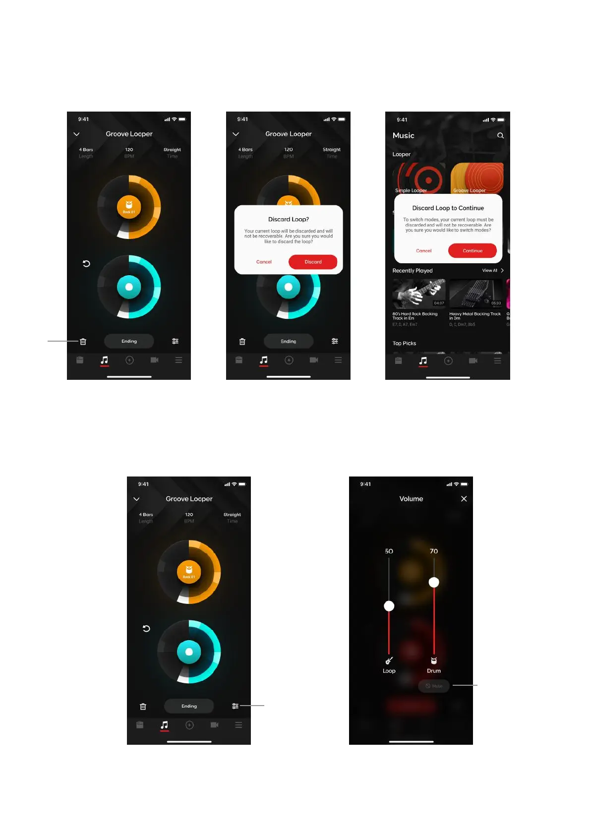 1. When switching between Simple and Groove looper, the loop must also be discarded.
