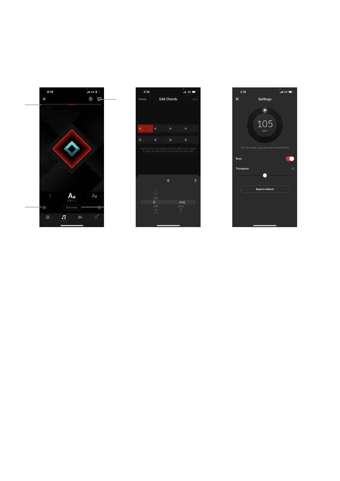 C. Tap the Settings icon on the bottom left to change the jam track’s settings; you may adjust the tempo,