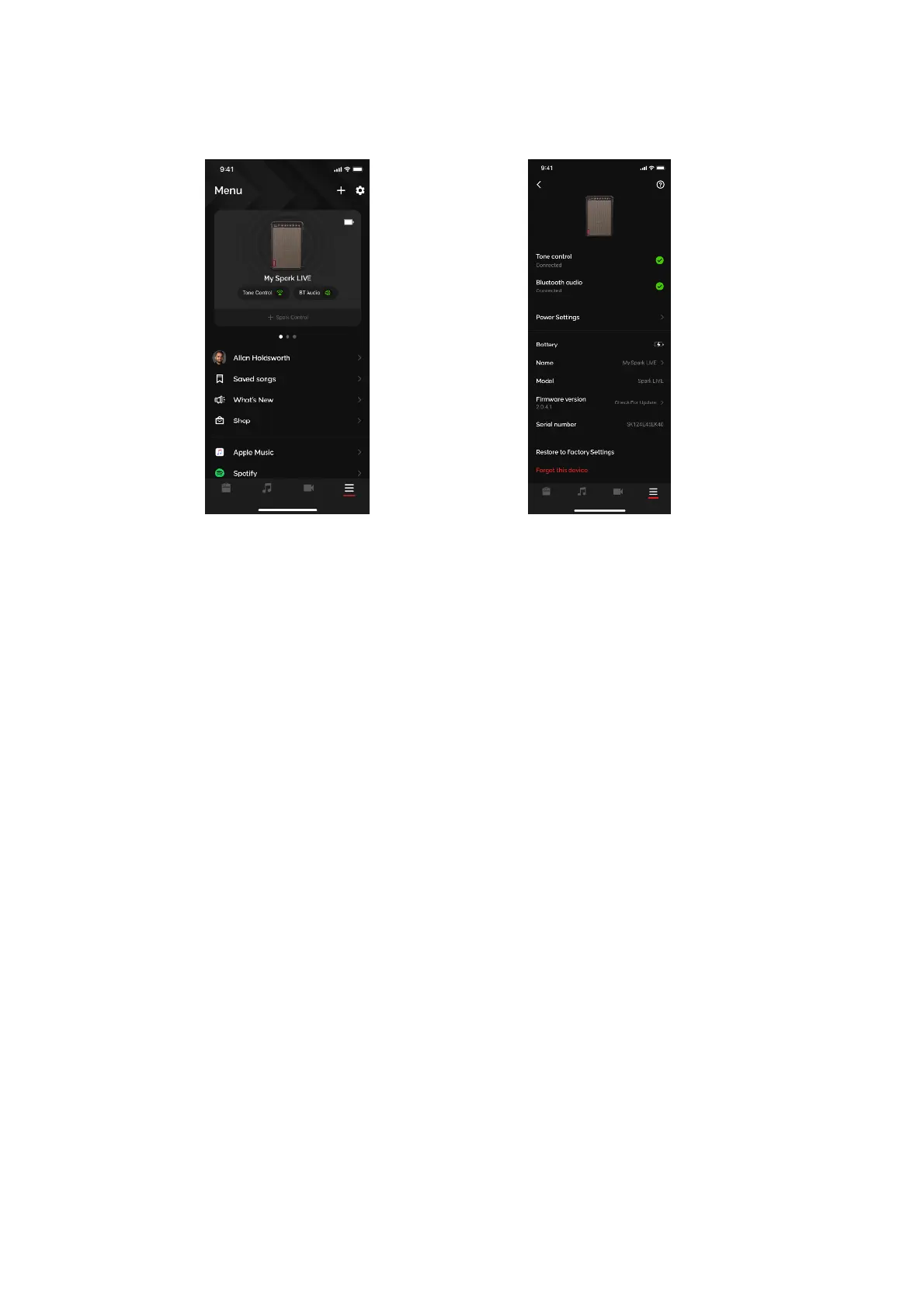 menu. While the Spark LIVE is in this state, instrument output and music playback will be temporarily