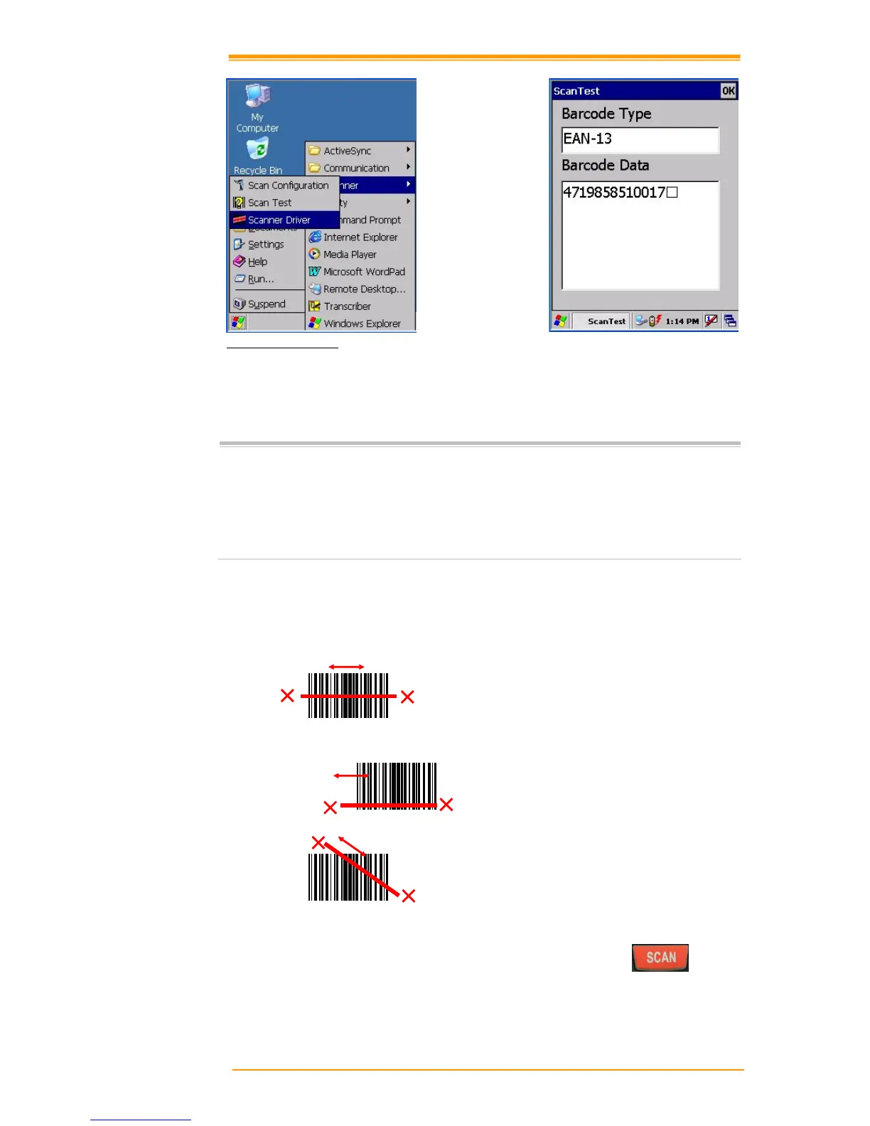 ! Point the LED lightbeam at barcode as shown in the scan position illustration above.