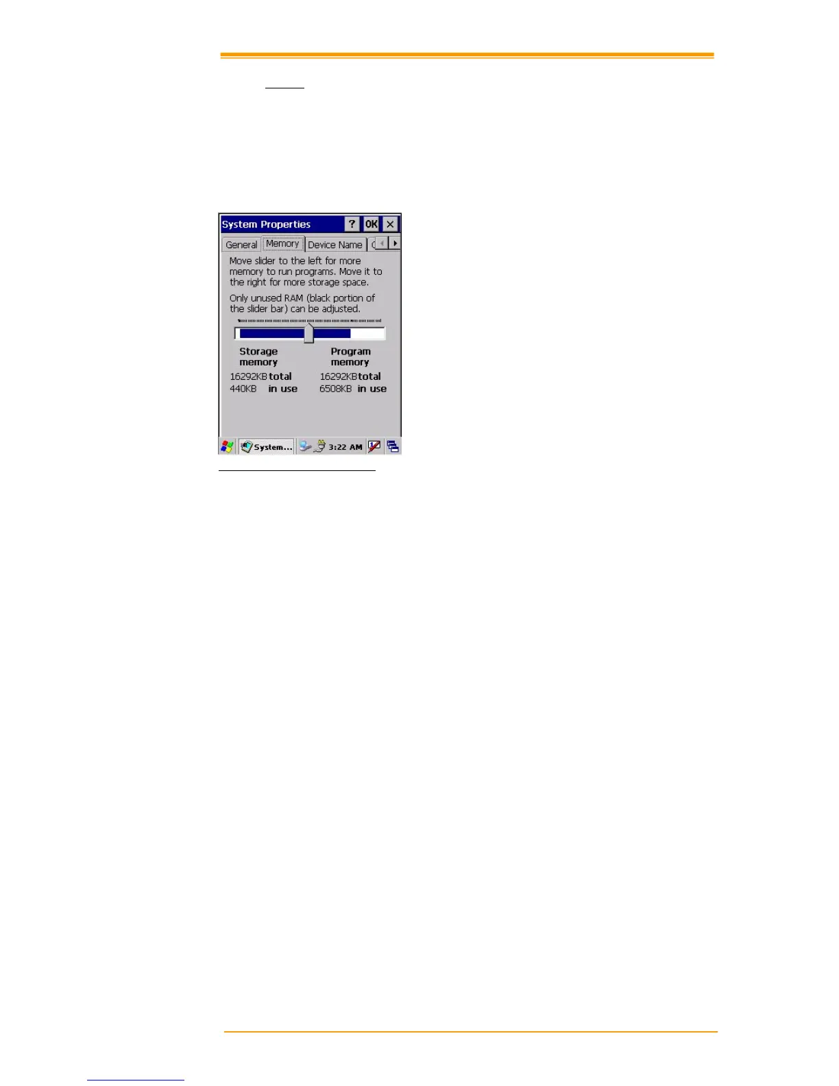3. The blue part of the slider indicates the available memory capacity.